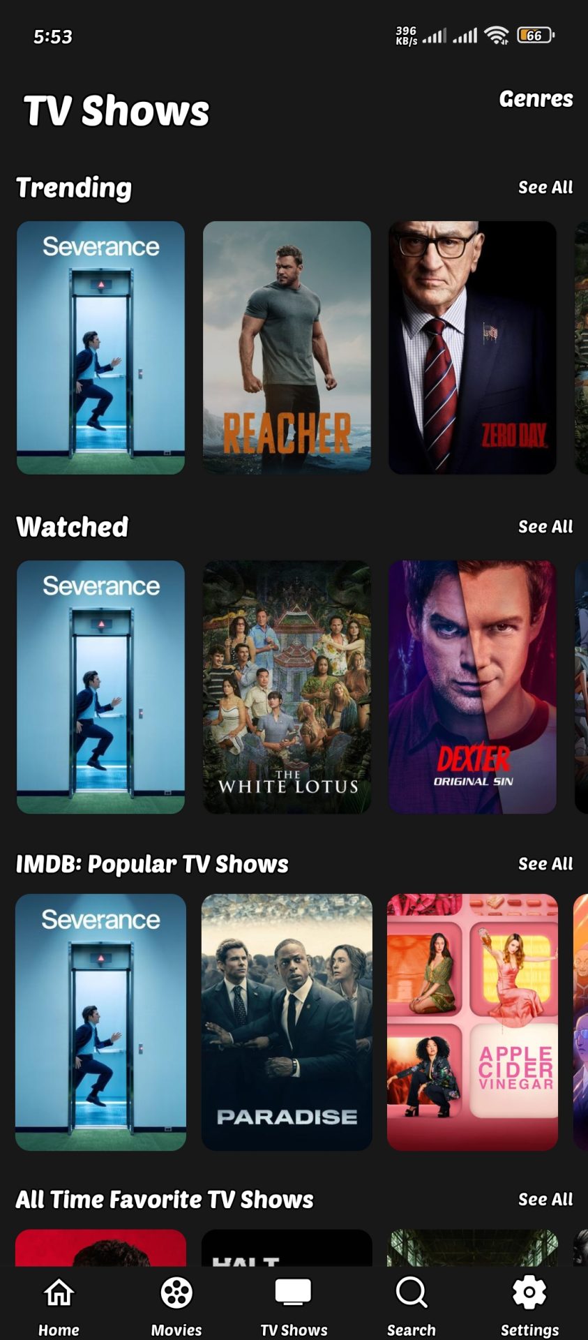 Users of this app can quickly log the TV shows and movies they have seen or intend to see. With its elegant design and simple interface, users can quickly arrange their preferred titles. While properly managing your personal watchlist, keep informed on forthcoming releases and enjoy a thorough knowledge of every movie.